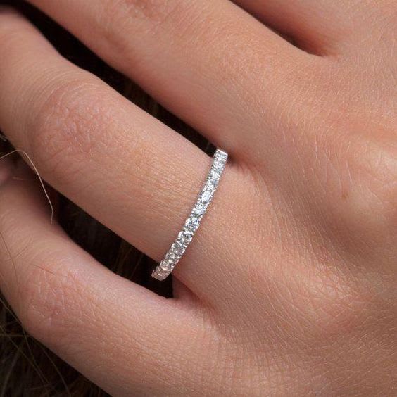 A classic and feminine full eternity wedding band in 18k white gold handcrafted and polished in London. Perfect match to any engagement ring of your choice to complete your unique style. All bands can be customised.