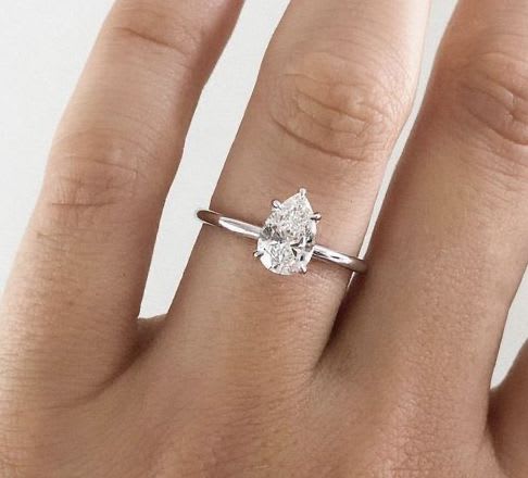 The classic shape of a pear-shaped diamond gently mounted in 18k white gold. The natural excellence of the centre diamond highlights its unique brilliance and makes a perfect match to any wedding band. The selection of diamonds available from D to H colour along with clarity from Flawless to VS2.