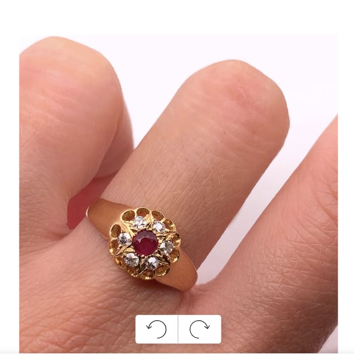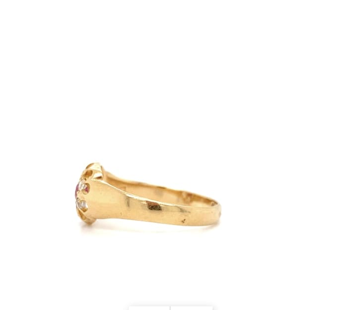 Discover the allure of this stunning ruby and diamond antique ring 18k yellow gold. This exquisite handmade engagement ring boasts a stunning natural Burmese ruby as its centrepiece, surrounded by a cluster of sparkling diamonds. The ruby’s rich red colour is complemented by the 18ct yellow gold band and setting, creating a truly luxurious piece of fine jewellery. The very good cut grade of the diamonds and the ruby’s round shape add to the overall brilliance of the ring. This solitaire with accents style ring is set in Great Britain and has a total carat weight of 0.45ct. Showcasing a classic cluster setting style, this ring is perfect for any special occasion. Antique style Ruby And Diamonds Engagement Ring 18k Yellow Gold. Full British hallmark. Gorgeous Natural unheated Ruby total weight 0.20ct. Beautiful ruby natural gemstone untreated with diamonds antique style engagement ring wedding bridal jewellery. Diamonds total weight 0.25ct G colour VS1 clarity. Accompanied by valuation.